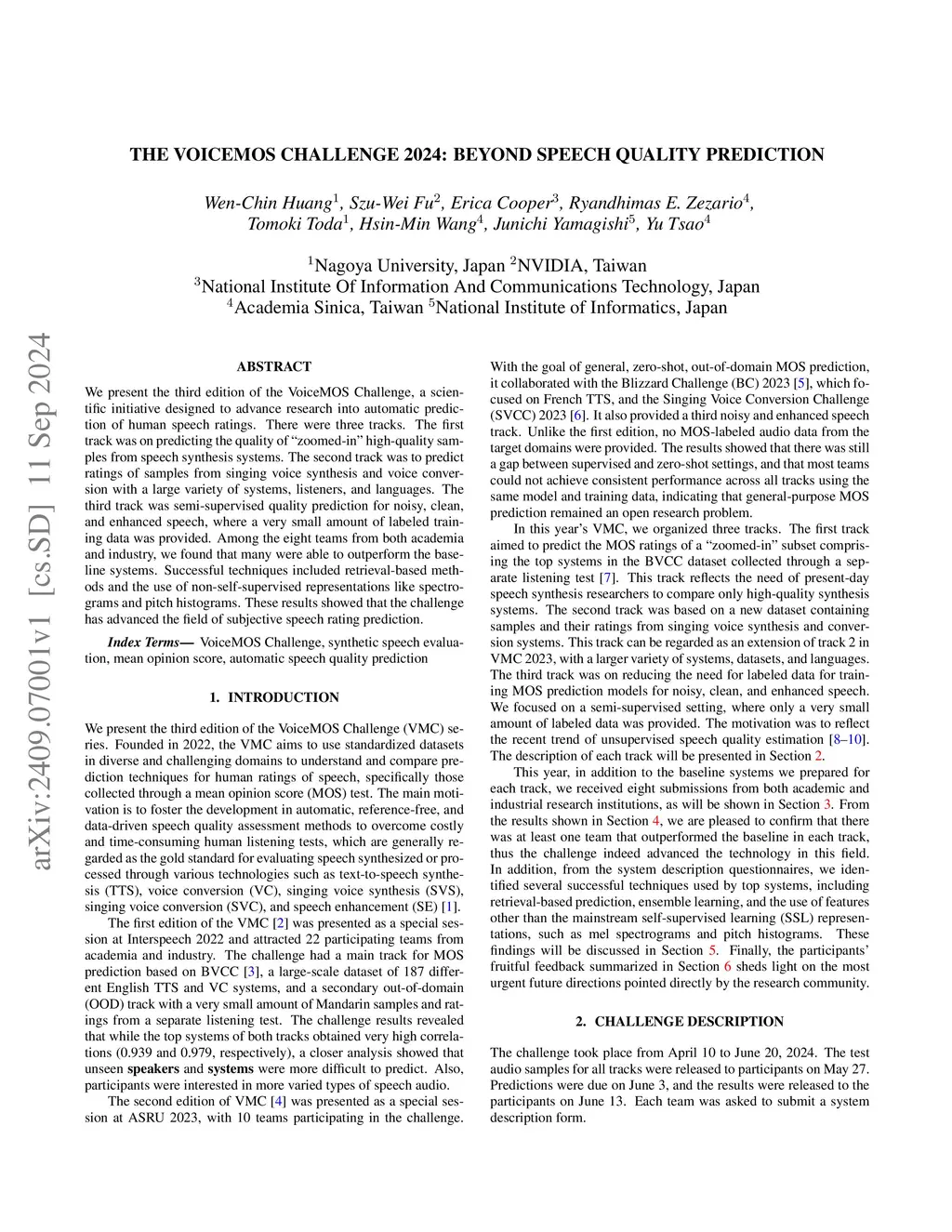 The VoiceMOS Challenge 2024: Beyond Speech Quality Prediction