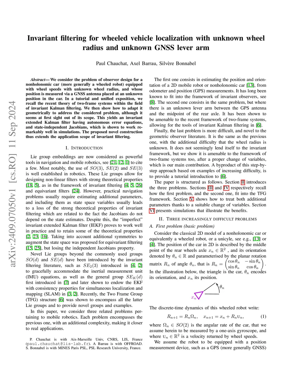 Invariant filtering for wheeled vehicle localization with unknown wheel