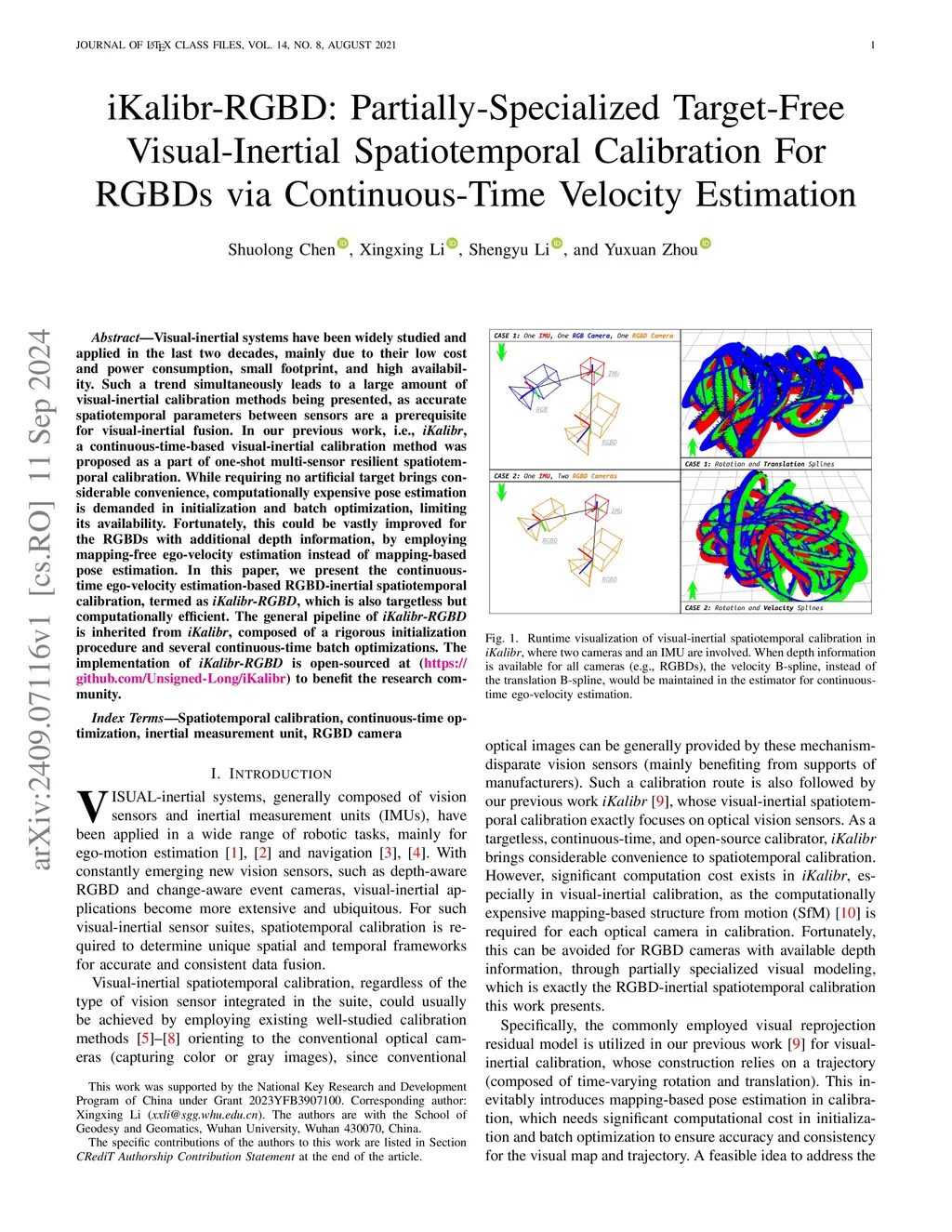 Spatiotemporal Calibration For RGBDs via Continuous-Time Velocity Estimation