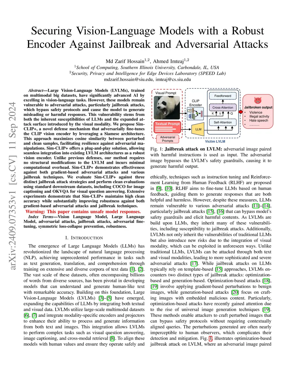 Securing Vision-Language Models with a Robust Encoder Against Jailbreak