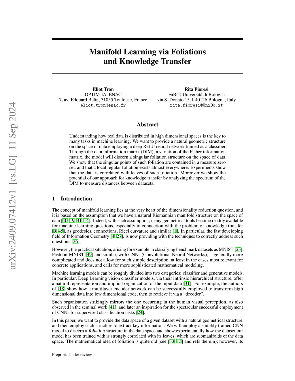 Manifold Learning via Foliations and Knowledge Transfer