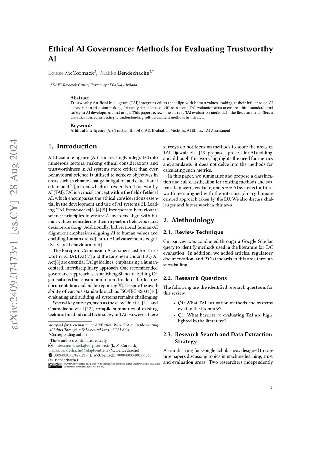 Ethical AI Governance: Methods for Evaluating Trustworthy AI