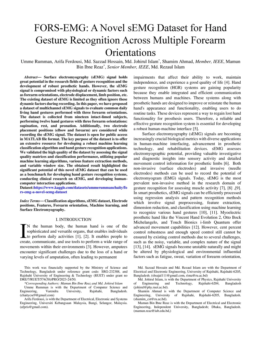 FORS-EMG: A Novel sEMG Dataset for Hand Gesture Recognition Across