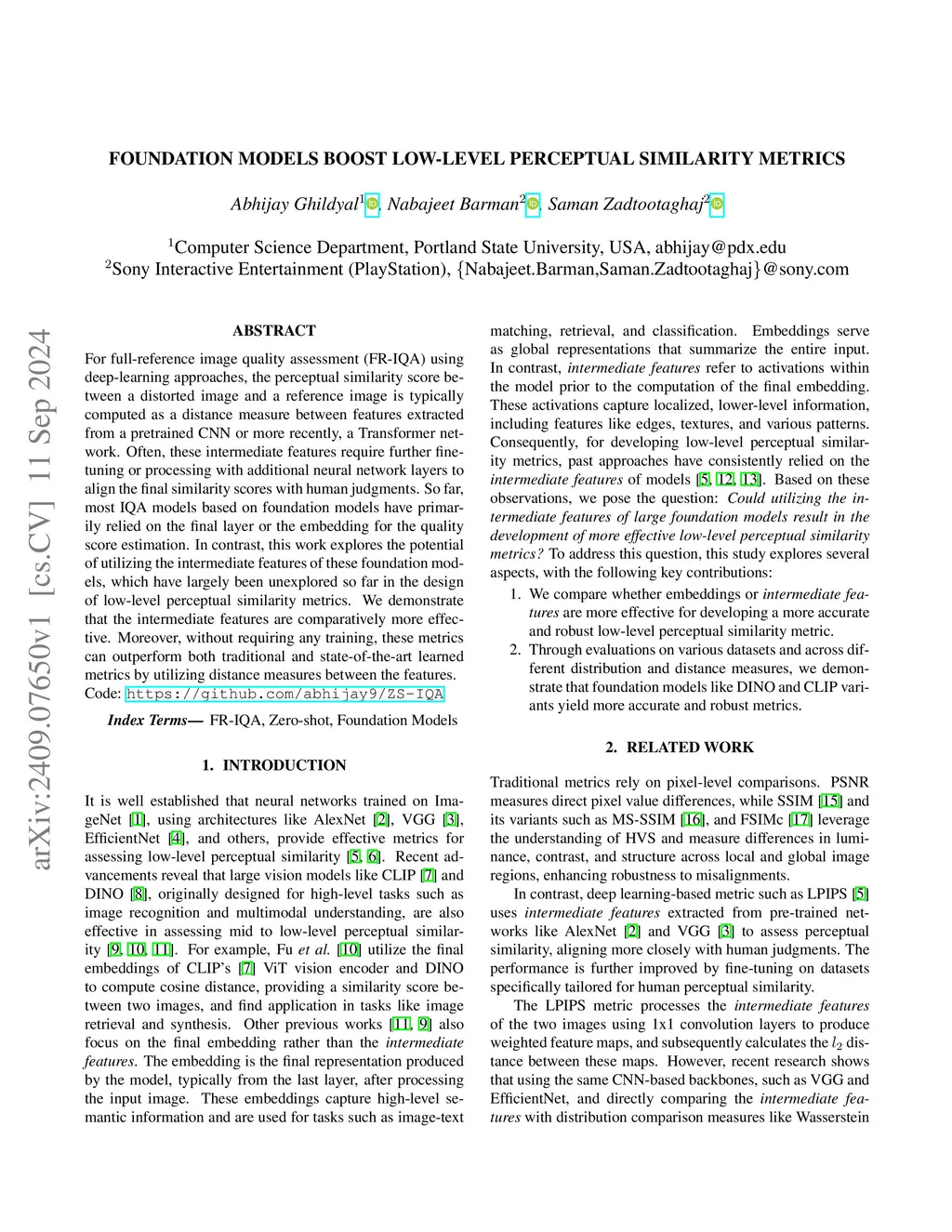 For full-reference image quality assessment (FR-IQA) using deep-learning approaches, the perceptual similarity score between a distorted image and a reference image is typically computed as a distance measure between features extracted from a pretrained CNN or more recently, a Transformer network. Often, these intermediate features require further fine-tuning or processing with additional neural network layers to align the final similarity scores with human judgments. So far, most IQA models based on foundation models have primarily relied on the final layer or the embedding for the quality score estimation. In contrast, this work explores the potential of utilizing the intermediate features of these foundation models, which have largely been unexplored so far in the design of low-level perceptual similarity metrics. We demonstrate that the intermediate features are comparatively more effective. Moreover, without requiring any training, these metrics can outperform both traditional and state-of-the-art learned metrics by utilizing distance measures between the features.