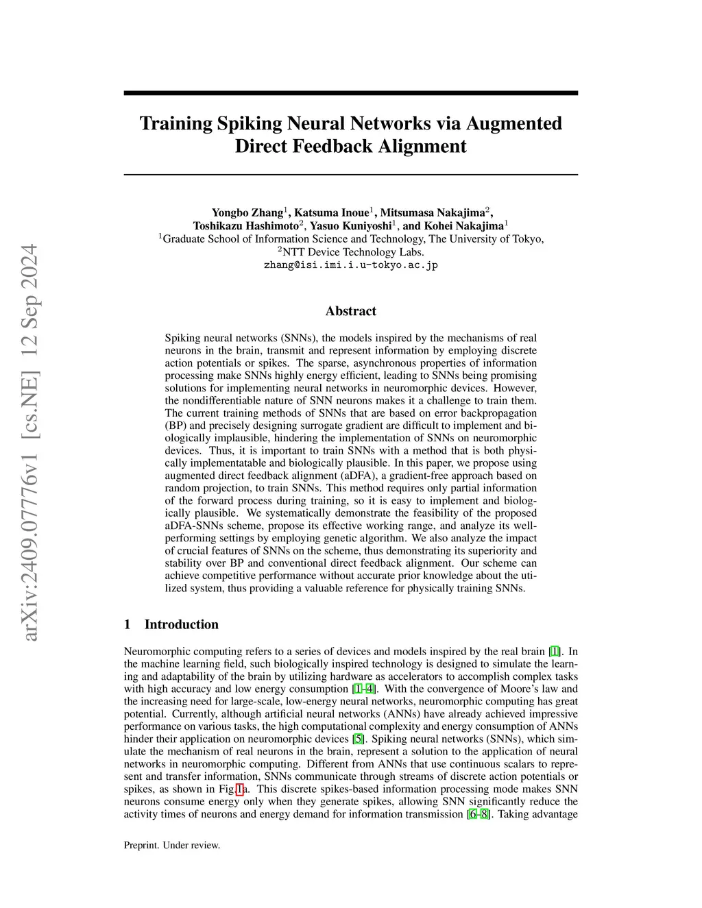 Training Spiking Neural Networks via Augmented Direct Feedback Alignment