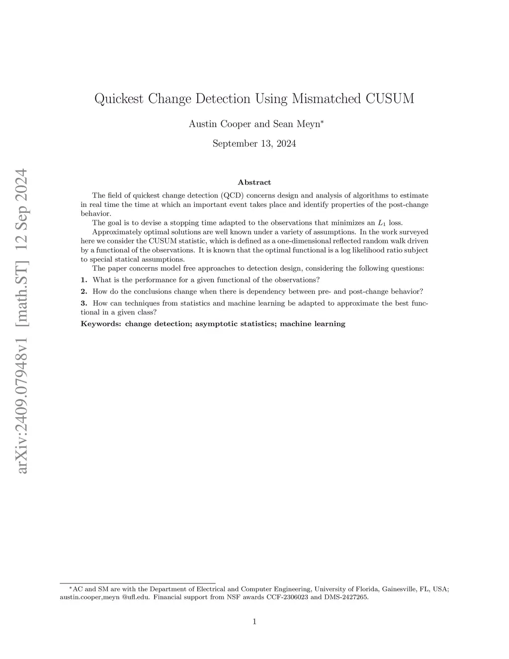 The field of quickest change detection (QCD) concerns design and analysis of algorithms to estimate in real time the time at which an important event takes place and identify properties of the post-change behavior. The goal is to devise a stopping time adapted to the observations that minimizes an loss. Approximately optimal solutions are well known under a variety of assumptions. In the work surveyed here we consider the CUSUM statistic, which is defined as a one-dimensional reflected random walk driven by a functional of the observations. It is known that the optimal functional is a log likelihood ratio subject to special statical assumptions. The paper concerns model free approaches to detection design, considering the following questions: 1. What is the performance for a given functional of the observations? 2. How do the conclusions change when there is dependency between pre- and post-change behavior? 3. How can techniques from statistics and machine learning be adapted to approximate the best functional in a given class?
