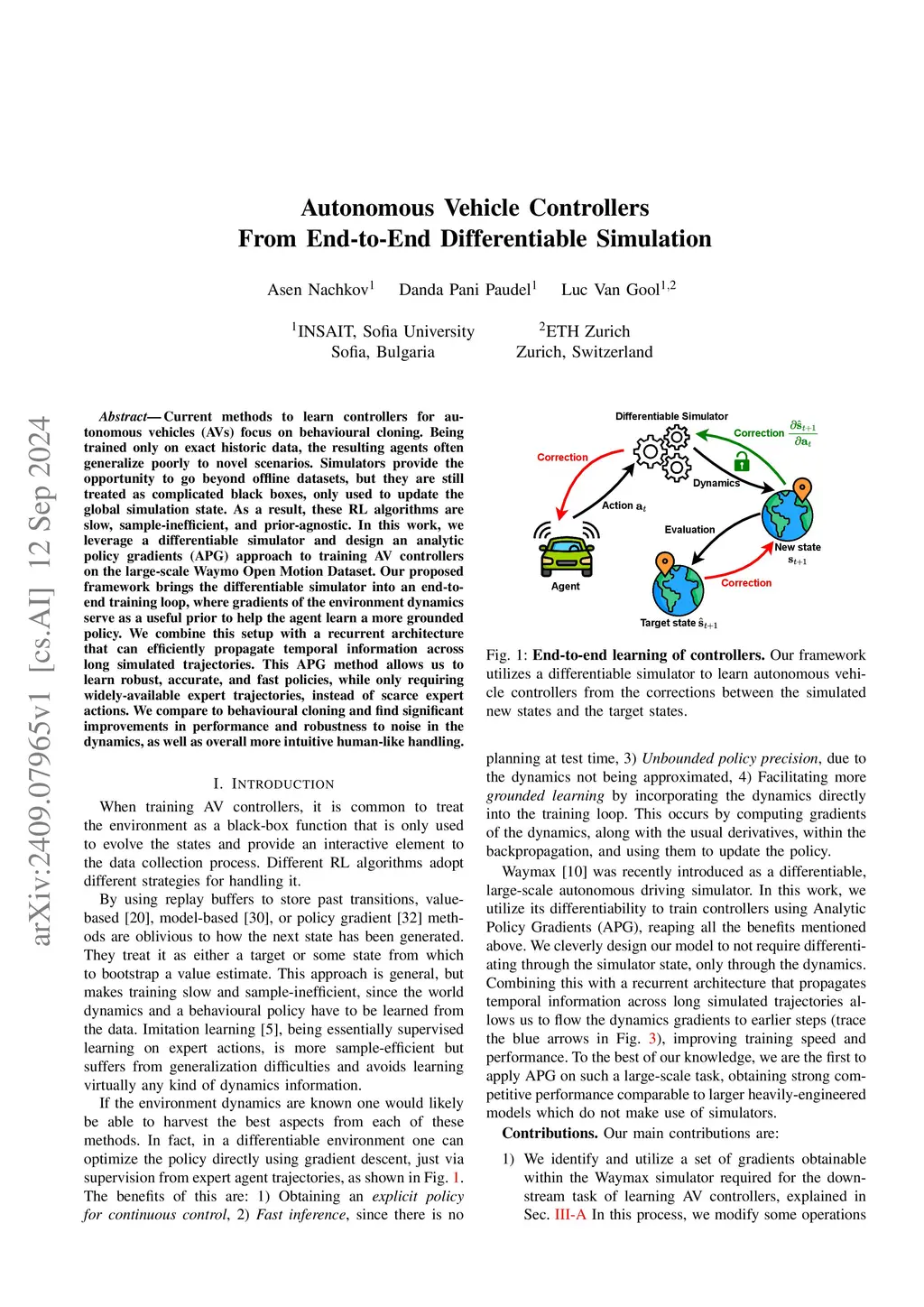 Autonomous Vehicle Controllers From End-to-End Differentiable Simulation