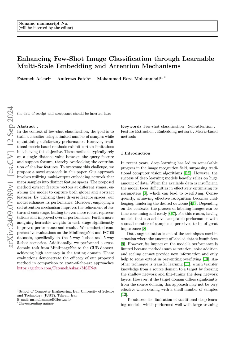 Enhancing Few-Shot Image Classification through Learnable Multi-Scale Embedding and Attention Mechanisms