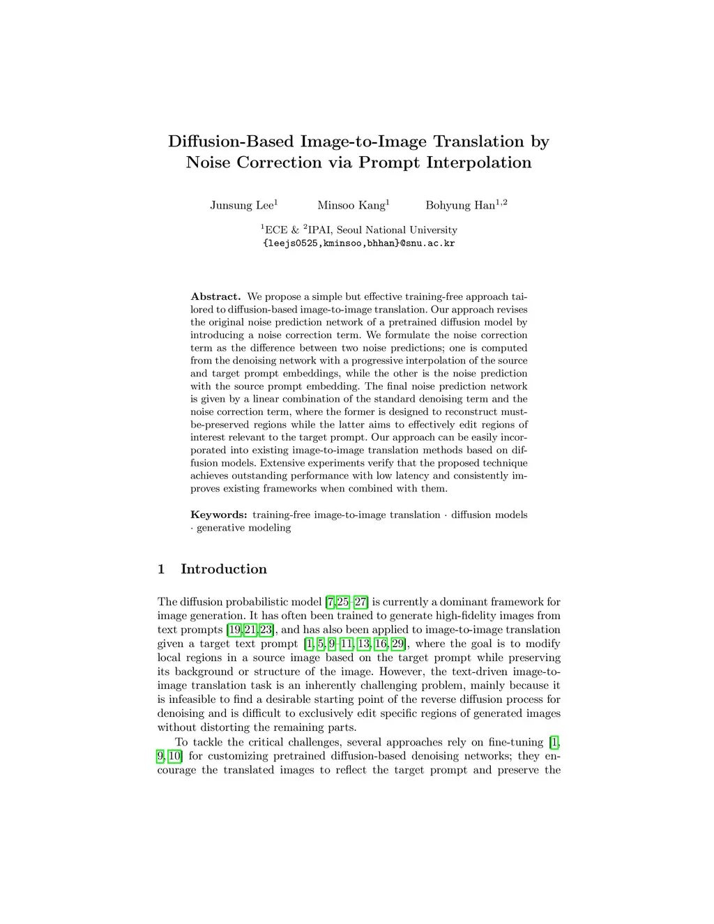 Diffusion-Based Image-to-Image Translation by Noise Correction via