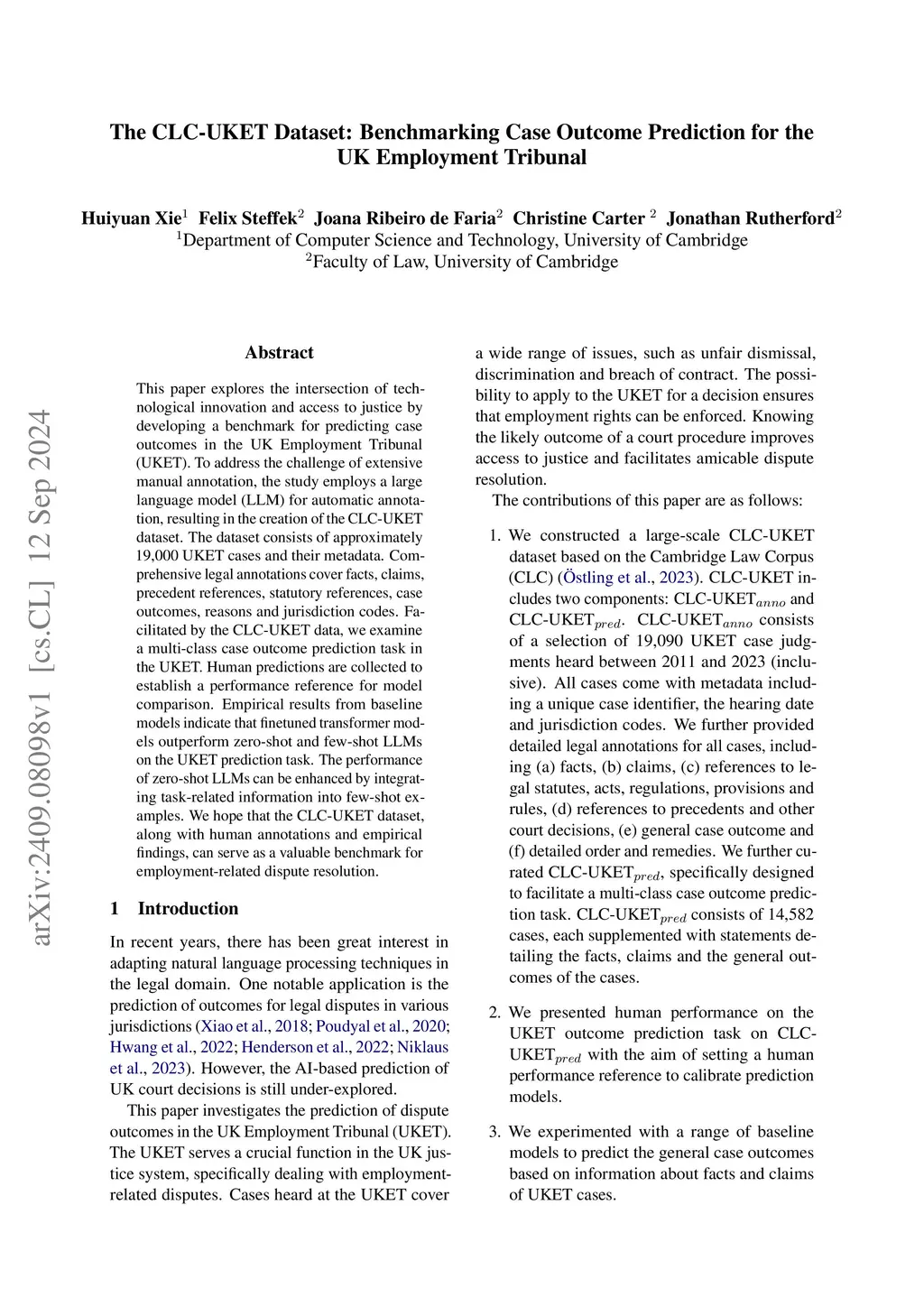 The CLC-UKET Dataset: Benchmarking Case Outcome Prediction for the UK