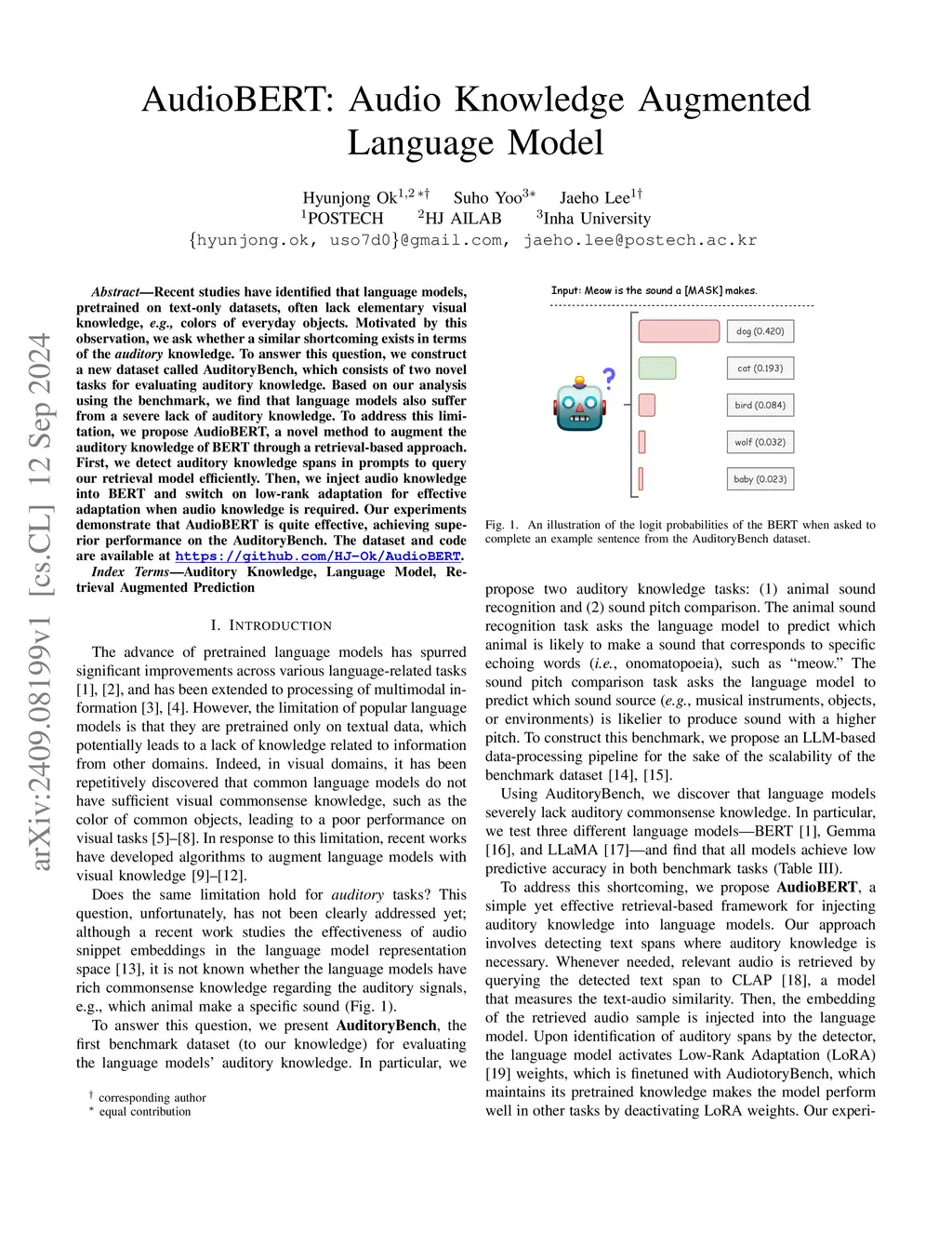 Recent studies have identified that language models, pretrained on text-only datasets, often lack elementary visual knowledge, \textit{e.g.,} colors of everyday objects. Motivated by this observation, we ask whether a similar shortcoming exists in terms of the \textit{auditory} knowledge. To answer this question, we construct a new dataset called AuditoryBench, which consists of two novel tasks for evaluating auditory knowledge. Based on our analysis using the benchmark, we find that language models also suffer from a severe lack of auditory knowledge. To address this limitation, we propose AudioBERT, a novel method to augment the auditory knowledge of BERT through a retrieval-based approach. First, we detect auditory knowledge spans in prompts to query our retrieval model efficiently. Then, we inject audio knowledge into BERT and switch on low-rank adaptation for effective adaptation when audio knowledge is required. Our experiments demonstrate that AudioBERT is quite effective, achieving superior performance on the AuditoryBench. The dataset and code are available at \bulurl{this https URL}.