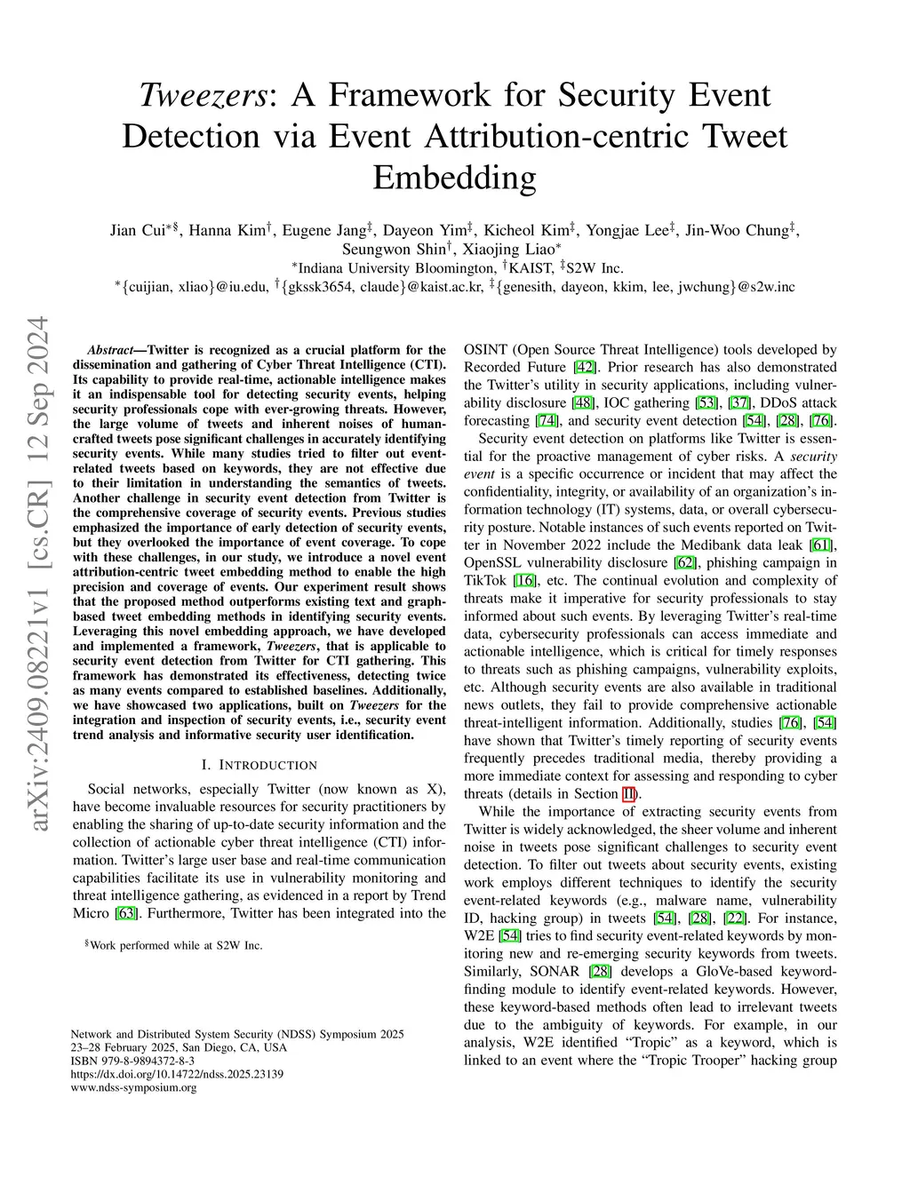 Tweezers: A Framework for Security Event Detection via Event