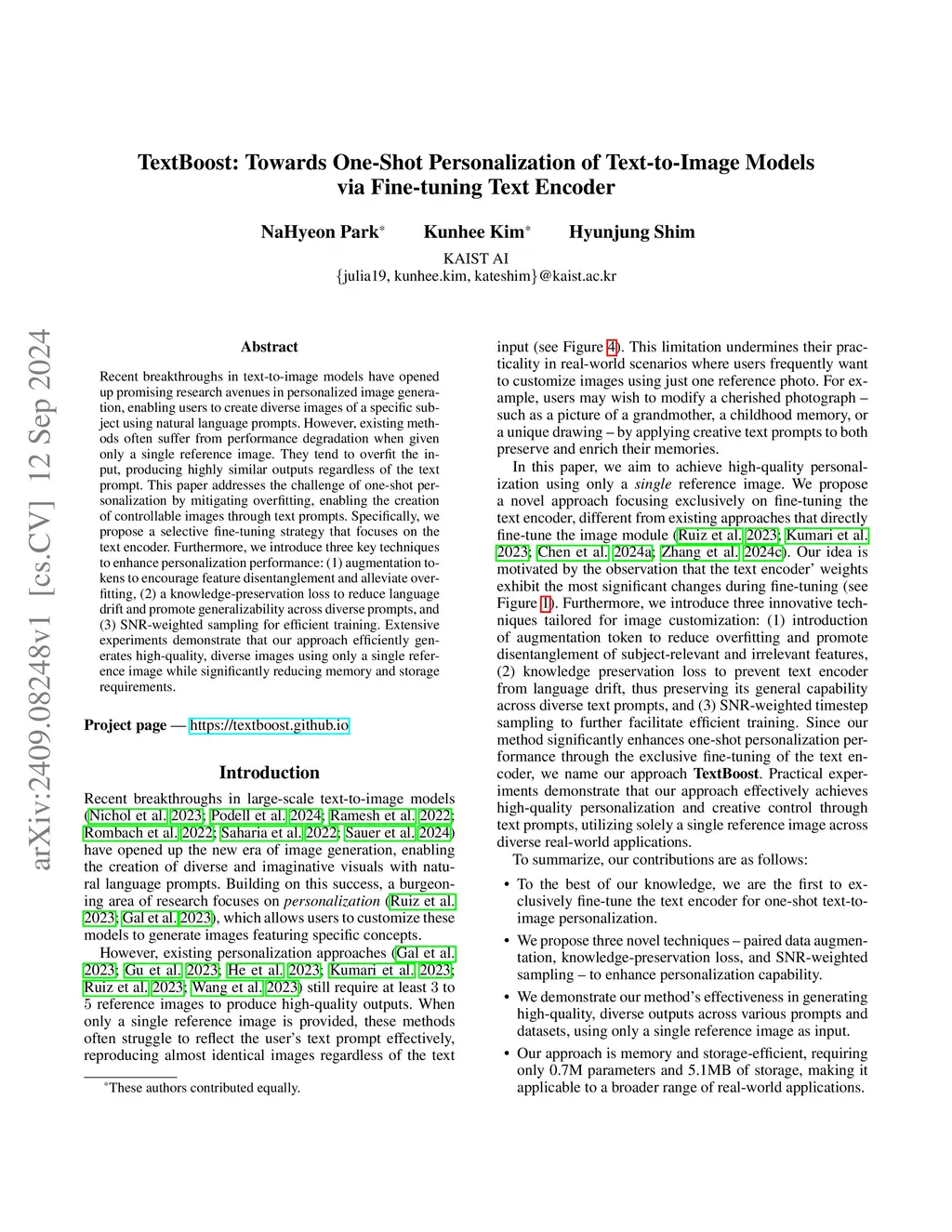 TextBoost: Towards One-Shot Personalization of Text-to-Image Models via