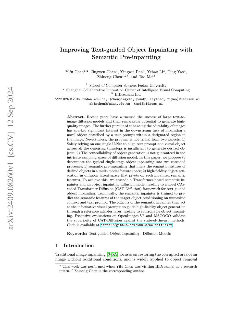 Improving Text-guided Object Inpainting with Semantic Pre-inpainting