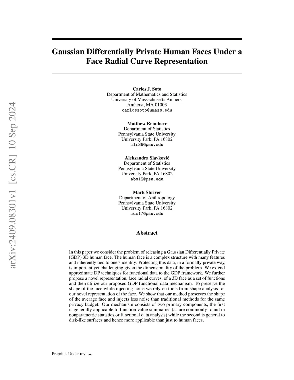 In this paper we consider the problem of releasing a Gaussian Differentially Private (GDP) 3D human face. The human face is a complex structure with many features and inherently tied to one's identity. Protecting this data, in a formally private way, is important yet challenging given the dimensionality of the problem. We extend approximate DP techniques for functional data to the GDP framework. We further propose a novel representation, face radial curves, of a 3D face as a set of functions and then utilize our proposed GDP functional data mechanism. To preserve the shape of the face while injecting noise we rely on tools from shape analysis for our novel representation of the face. We show that our method preserves the shape of the average face and injects less noise than traditional methods for the same privacy budget. Our mechanism consists of two primary components, the first is generally applicable to function value summaries (as are commonly found in nonparametric statistics or functional data analysis) while the second is general to disk-like surfaces and hence more applicable than just to human faces.