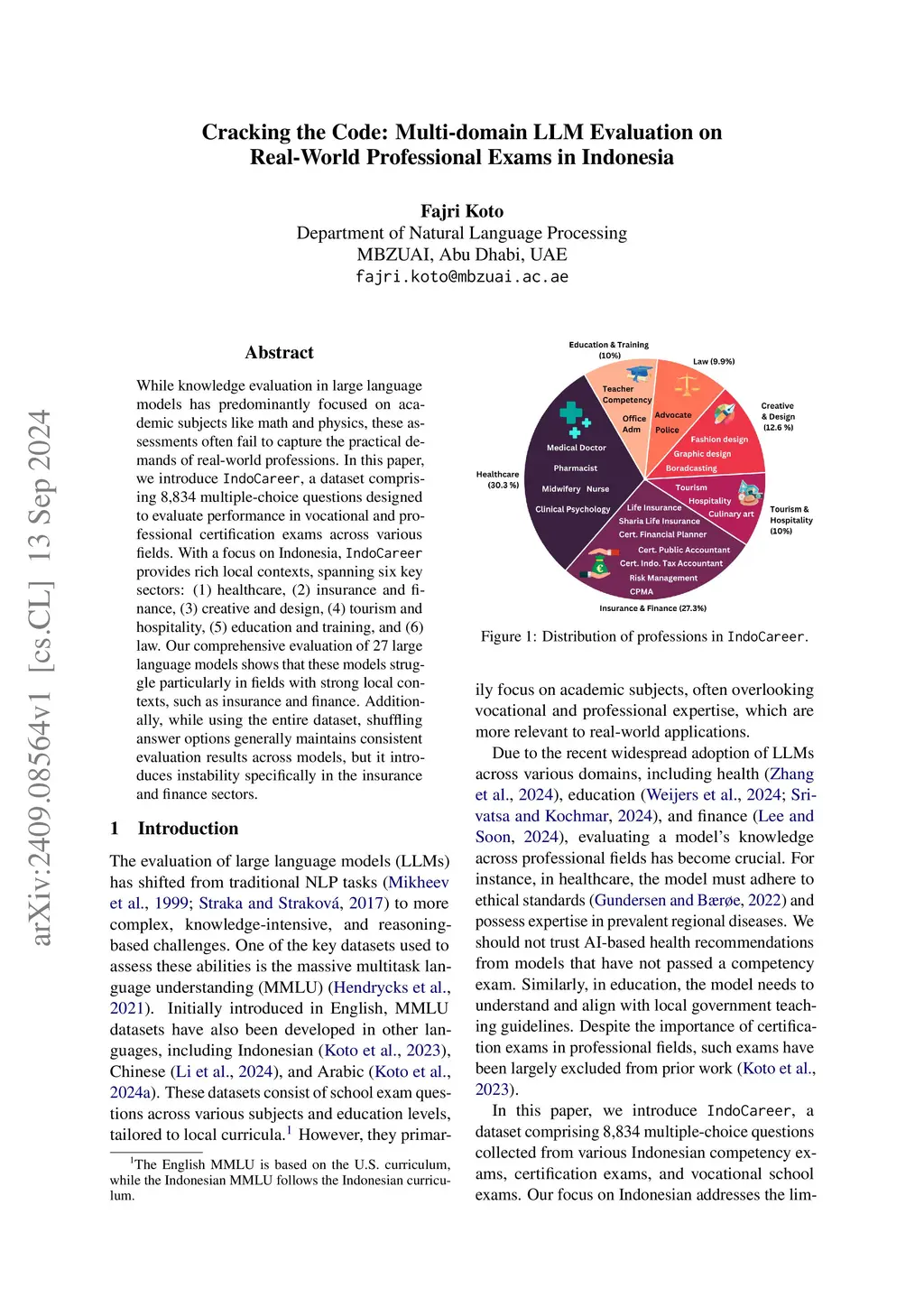 Cracking the Code: Multi-domain LLM Evaluation on Real-World Professional Exams in Indonesia
