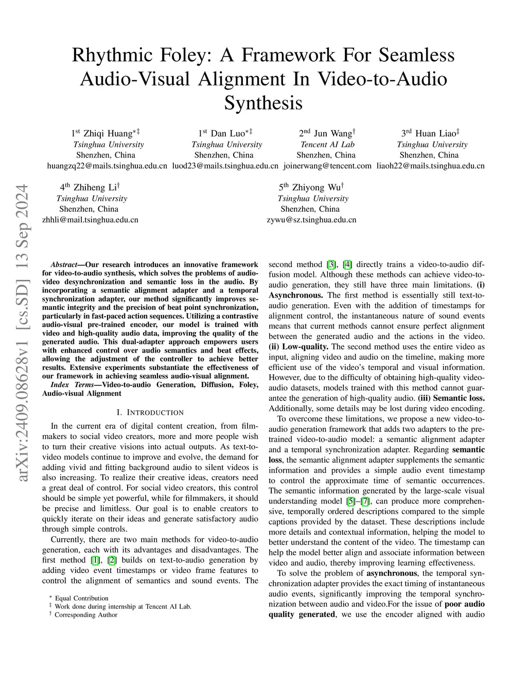 Our research introduces an innovative framework for video-to-audio synthesis, which solves the problems of audio-video desynchronization and semantic loss in the audio. By incorporating a semantic alignment adapter and a temporal synchronization adapter, our method significantly improves semantic integrity and the precision of beat point synchronization, particularly in fast-paced action sequences. Utilizing a contrastive audio-visual pre-trained encoder, our model is trained with video and high-quality audio data, improving the quality of the generated audio. This dual-adapter approach empowers users with enhanced control over audio semantics and beat effects, allowing the adjustment of the controller to achieve better results. Extensive experiments substantiate the effectiveness of our framework in achieving seamless audio-visual alignment.