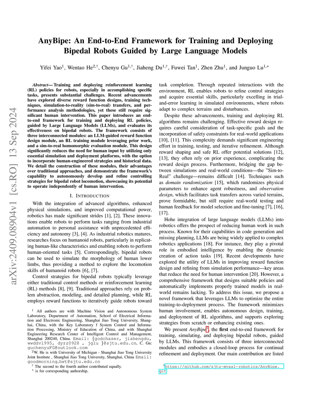 AnyBipe: An End-to-End Framework for Training and Deploying Bipedal Robots Guided by Large Language Models