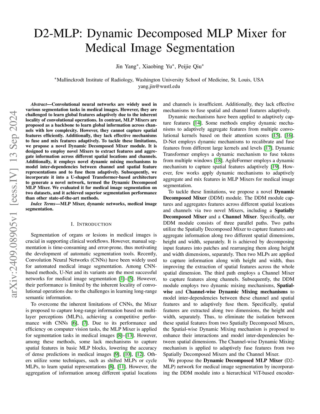 D2-MLP: Dynamic Decomposed MLP Mixer for Medical Image Segmentation