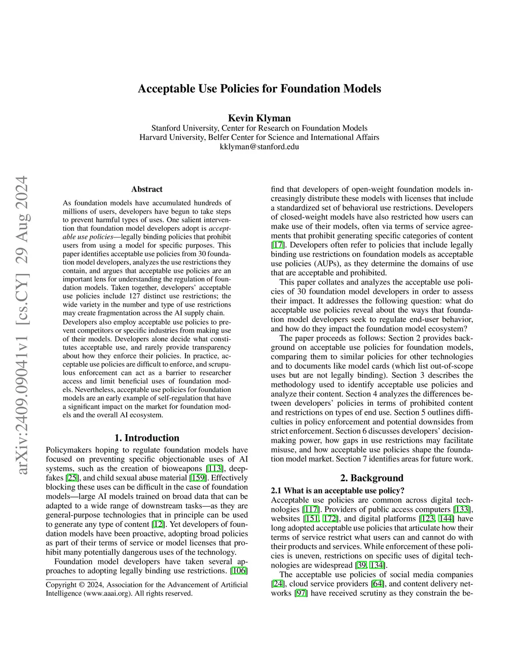 As foundation models have accumulated hundreds of millions of users, developers have begun to take steps to prevent harmful types of uses. One salient intervention that foundation model developers adopt is acceptable use policies: legally binding policies that prohibit users from using a model for specific purposes. This paper identifies acceptable use policies from 30 foundation model developers, analyzes the use restrictions they contain, and argues that acceptable use policies are an important lens for understanding the regulation of foundation models. Taken together, developers' acceptable use policies include 127 distinct use restrictions; the wide variety in the number and type of use restrictions may create fragmentation across the AI supply chain. Developers also employ acceptable use policies to prevent competitors or specific industries from making use of their models. Developers alone decide what constitutes acceptable use, and rarely provide transparency about how they enforce their policies. In practice, acceptable use policies are difficult to enforce, and scrupulous enforcement can act as a barrier to researcher access and limit beneficial uses of foundation models. Nevertheless, acceptable use policies for foundation models are an early example of self-regulation that have a significant impact on the market for foundation models and the overall AI ecosystem.