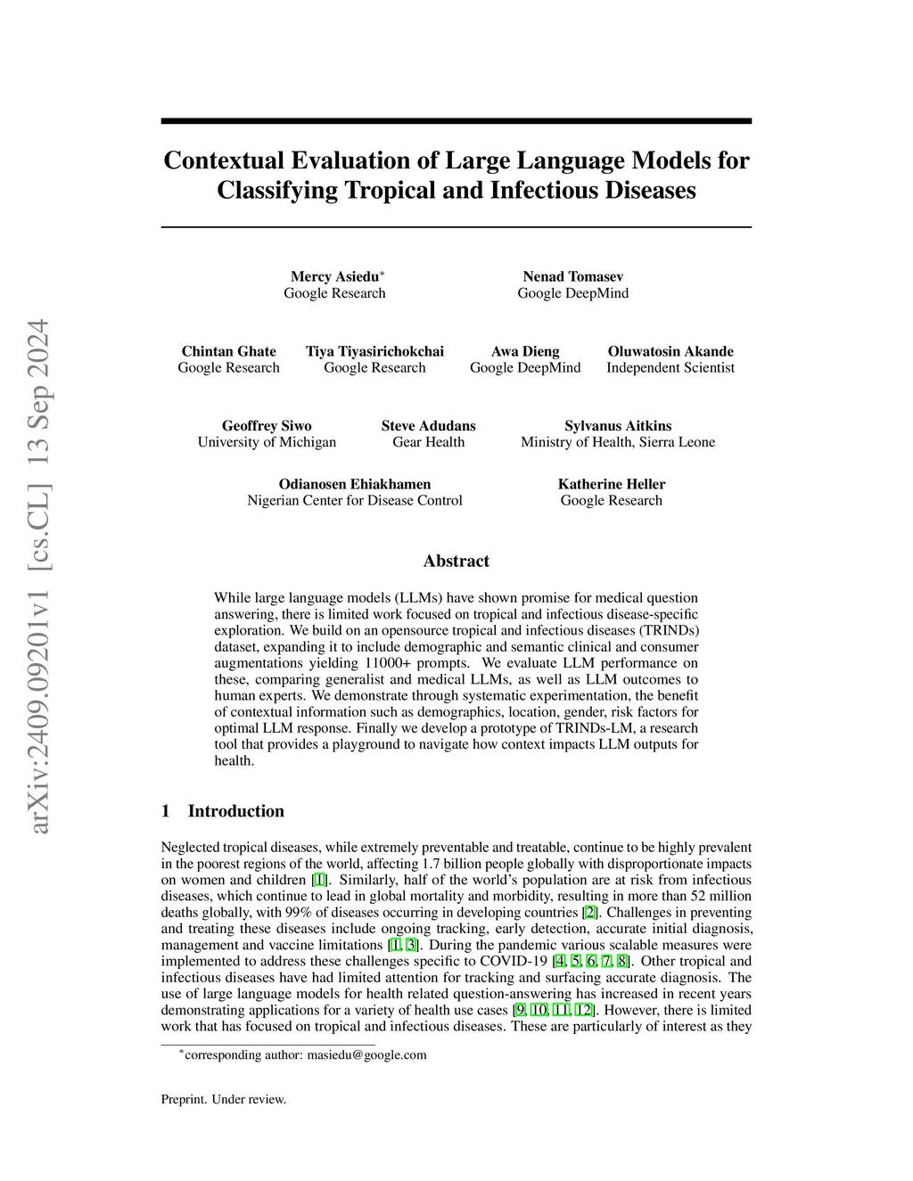 Contextual Evaluation of Large Language Models for Classifying Tropical and Infectious Diseases