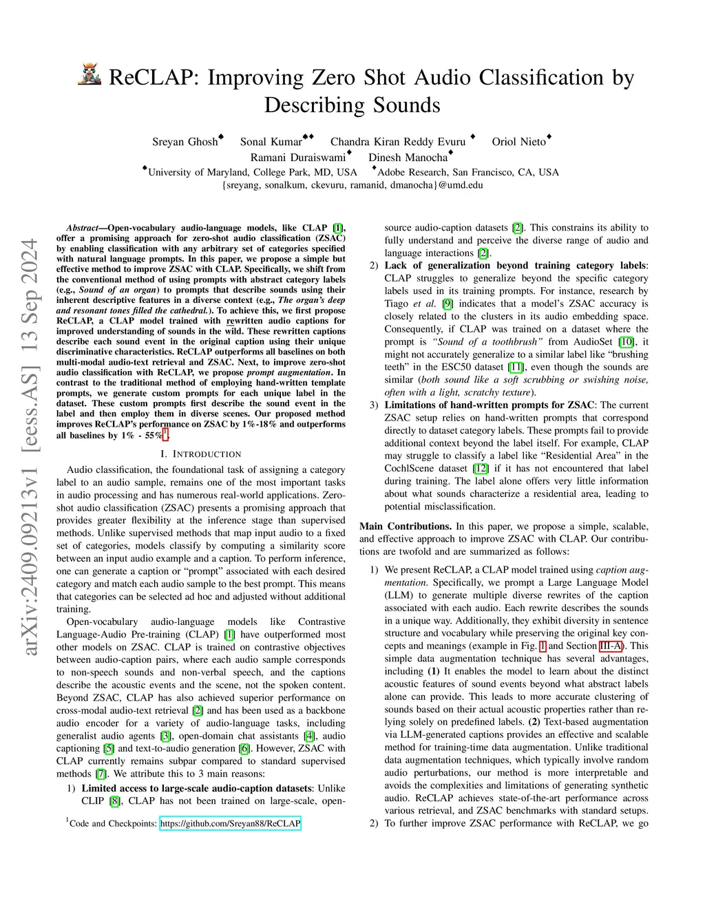 ReCLAP: Improving Zero Shot Audio Classification by Describing Sounds