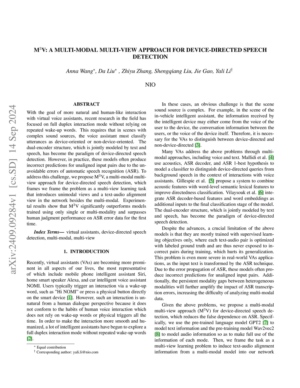 With the goal of more natural and human-like interaction with virtual voice assistants, recent research in the field has focused on full duplex interaction mode without relying on repeated wake-up words. This requires that in scenes with complex sound sources, the voice assistant must classify utterances as device-oriented or non-device-oriented. The dual-encoder structure, which is jointly modeled by text and speech, has become the paradigm of device-directed speech detection. However, in practice, these models often produce incorrect predictions for unaligned input pairs due to the unavoidable errors of automatic speech recognition (ASR).To address this challenge, we propose MV, a multi-modal multi-view approach for device-directed speech detection, which frames we frame the problem as a multi-view learning task that introduces unimodal views and a text-audio alignment view in the network besides the multi-modal. Experimental results show that MV significantly outperforms models trained using only single or multi-modality and surpasses human judgment performance on ASR error data for the first time.