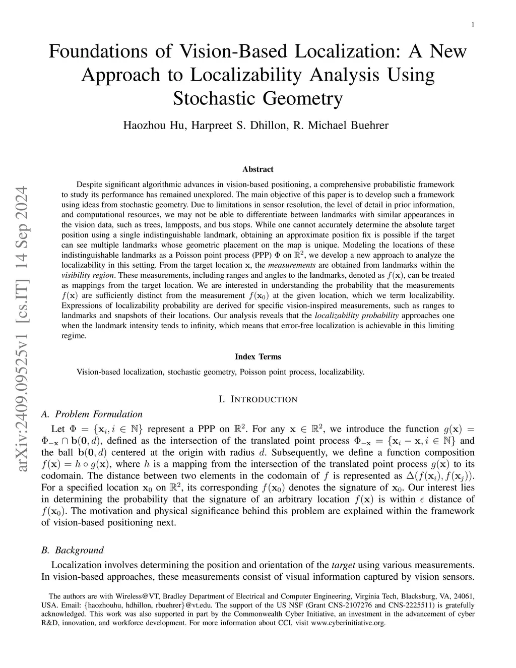 Foundations of Vision-Based Localization: A New Approach to