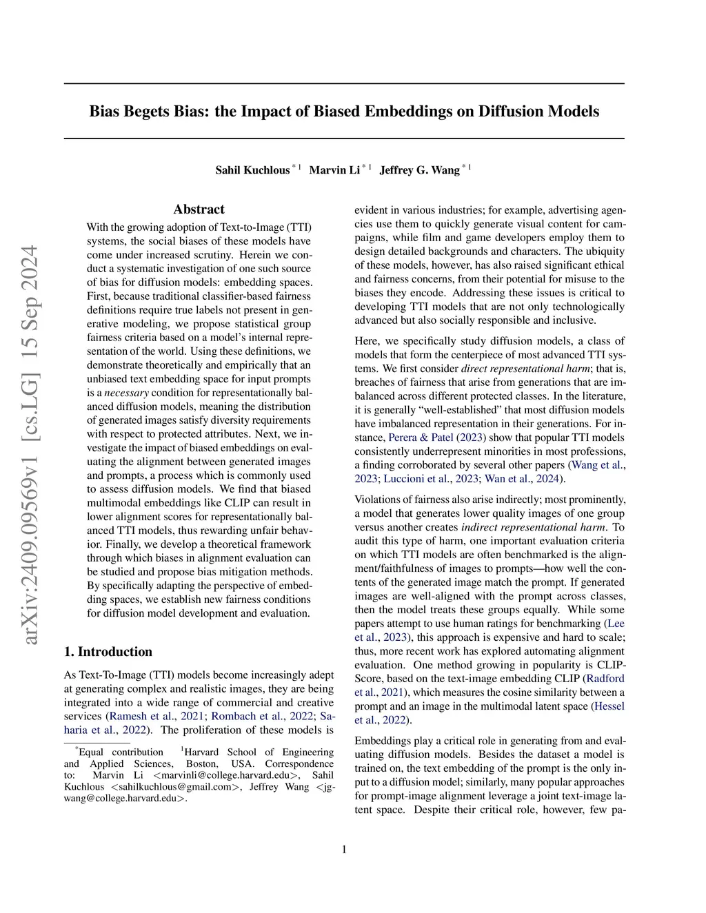 Bias Begets Bias: The Impact of Biased Embeddings on Diffusion Models