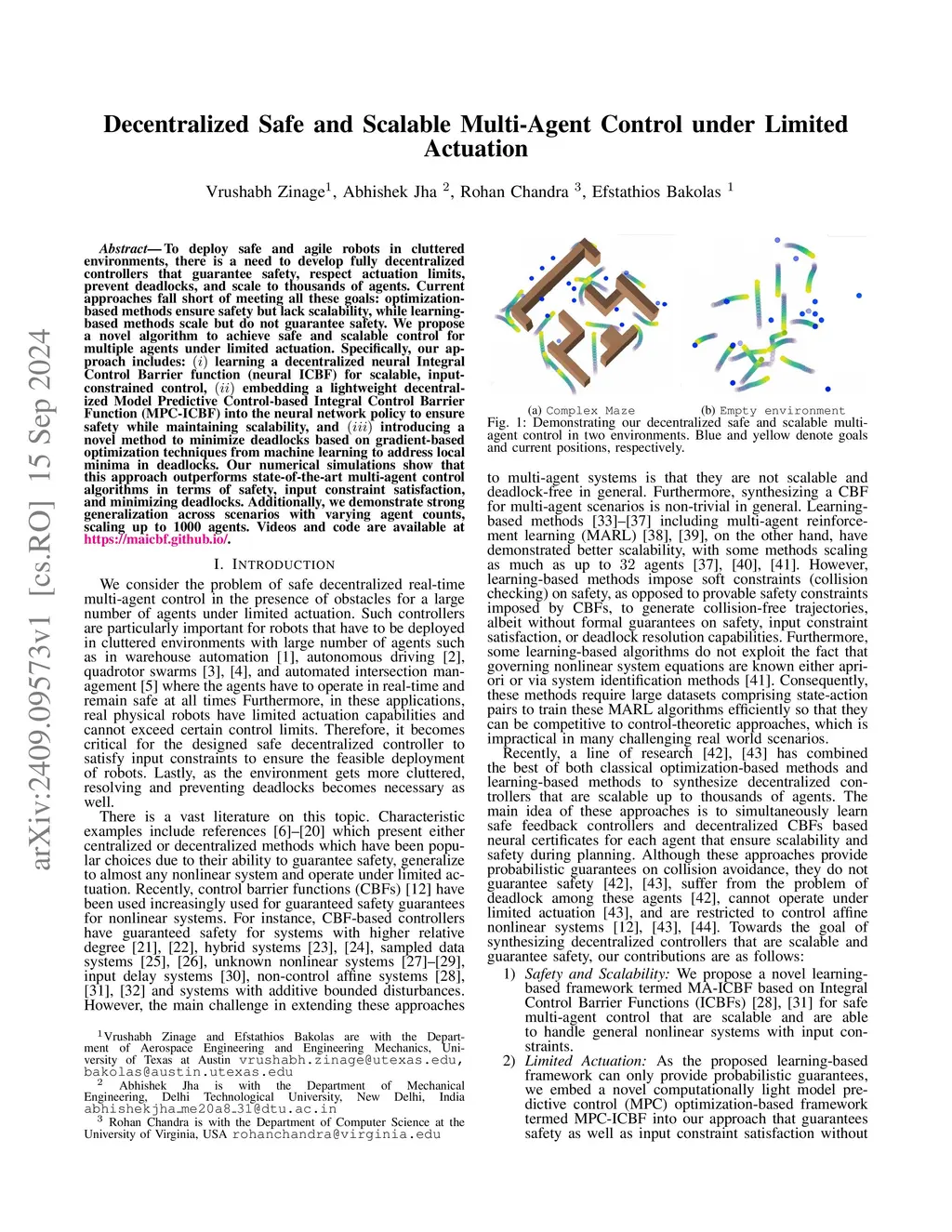 To deploy safe and agile robots in cluttered environments, there is a need to develop fully decentralized controllers that guarantee safety, respect actuation limits, prevent deadlocks, and scale to thousands of agents. Current approaches fall short of meeting all these goals: optimization-based methods ensure safety but lack scalability, while learning-based methods scale but do not guarantee safety. We propose a novel algorithm to achieve safe and scalable control for multiple agents under limited actuation. Specifically, our approach includes: learning a decentralized neural Integral Control Barrier function (neural ICBF) for scalable, input-constrained control, embedding a lightweight decentralized Model Predictive Control-based Integral Control Barrier Function (MPC-ICBF) into the neural network policy to ensure safety while maintaining scalability, and introducing a novel method to minimize deadlocks based on gradient-based optimization techniques from machine learning to address local minima in deadlocks. Our numerical simulations show that this approach outperforms state-of-the-art multi-agent control algorithms in terms of safety, input constraint satisfaction, and minimizing deadlocks. Additionally, we demonstrate strong generalization across scenarios with varying agent counts, scaling up to 1000 agents.