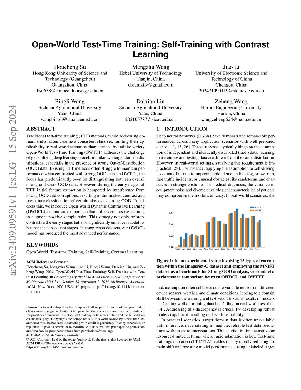Open-World Test-Time Training: Self-Training with Contrast Learning