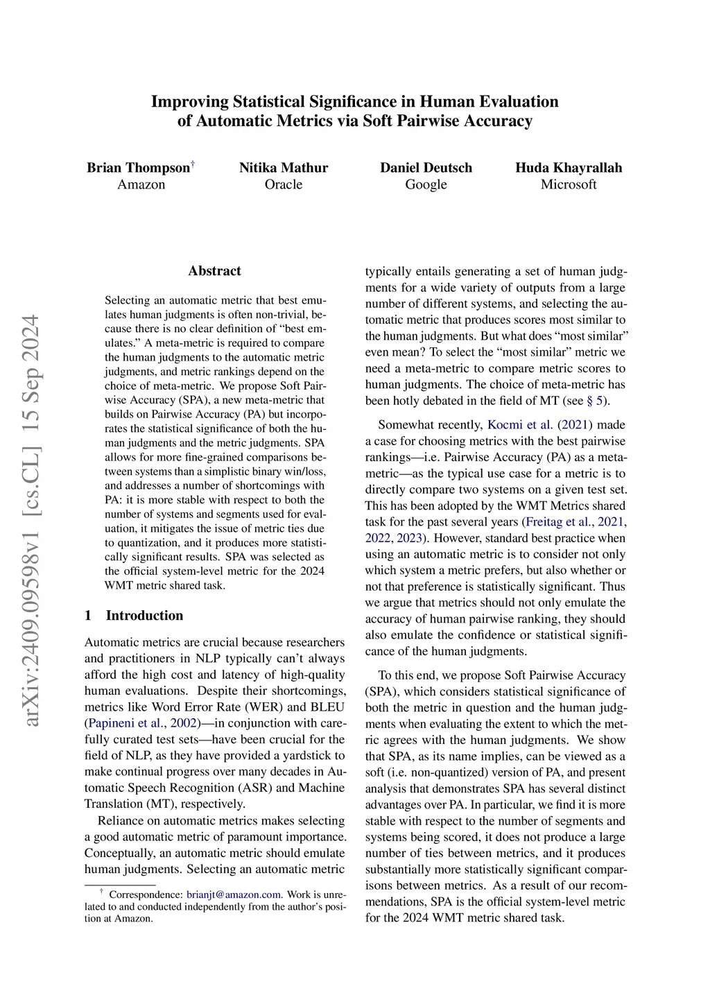 Selecting an automatic metric that best emulates human annotators is often non-trivial, because there is no clear definition of "best emulates." A meta-metric is required to compare the human judgments to the automatic metric scores, and metric rankings depend on the choice of meta-metric. We propose Soft Pairwise Accuracy (SPA), a new meta-metric that builds on Pairwise Accuracy (PA) but incorporates the statistical significance of both the human judgments and the metric scores. We show that SPA is more stable than PA with respect to changes in the number of systems/segments used for evaluation. We also show that PA can only assign a small set of distinct output values to metrics, and this results in many metrics being artificially assigned the exact same PA score. We demonstrate that SPA fixes this issue. Finally, we show that SPA is more discriminative than PA, producing more statistically significant comparisons between metrics. SPA was selected as the official system-level metric for the 2024 WMT Metrics Shared Task.