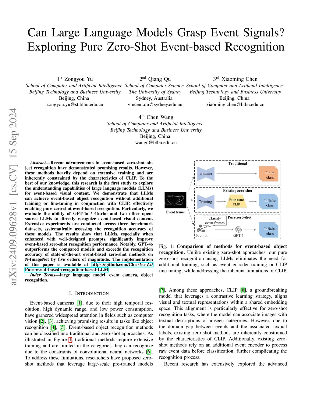 Recent advancements in event-based zero-shot object recognition have demonstrated promising results. However, these methods heavily depend on extensive training and are inherently constrained by the characteristics of CLIP. To the best of our knowledge, this research is the first study to explore the understanding capabilities of large language models (LLMs) for event-based visual content. We demonstrate that LLMs can achieve event-based object recognition without additional training or fine-tuning in conjunction with CLIP, effectively enabling pure zero-shot event-based recognition. Particularly, we evaluate the ability of GPT-4o / 4turbo and two other open-source LLMs to directly recognize event-based visual content. Extensive experiments are conducted across three benchmark datasets, systematically assessing the recognition accuracy of these models. The results show that LLMs, especially when enhanced with well-designed prompts, significantly improve event-based zero-shot recognition performance. Notably, GPT-4o outperforms the compared models and exceeds the recognition accuracy of state-of-the-art event-based zero-shot methods on N-ImageNet by five orders of magnitude. The implementation of this paper is available at \url{https://github.com/ChrisYu-Zz/Pure-event-based-recognition-based-LLM}.