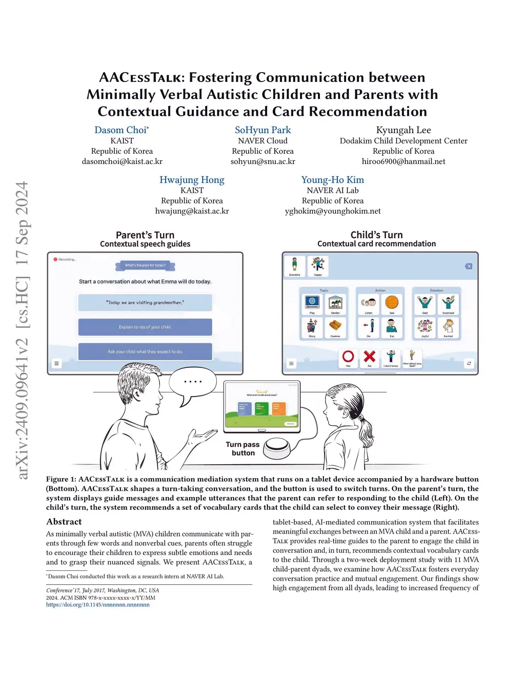 AACessTalk: Fostering Communication between Minimally Verbal Autistic Children and Parents with Contextual Guidance and Card Recommendation