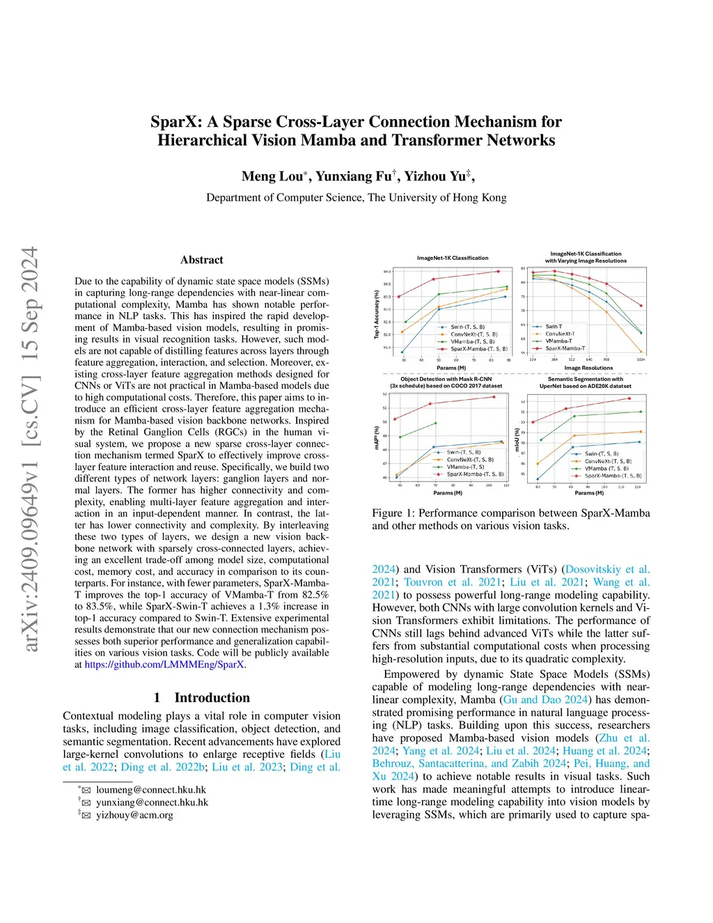SparX: A Sparse Cross-Layer Connection Mechanism for Hierarchical Vision