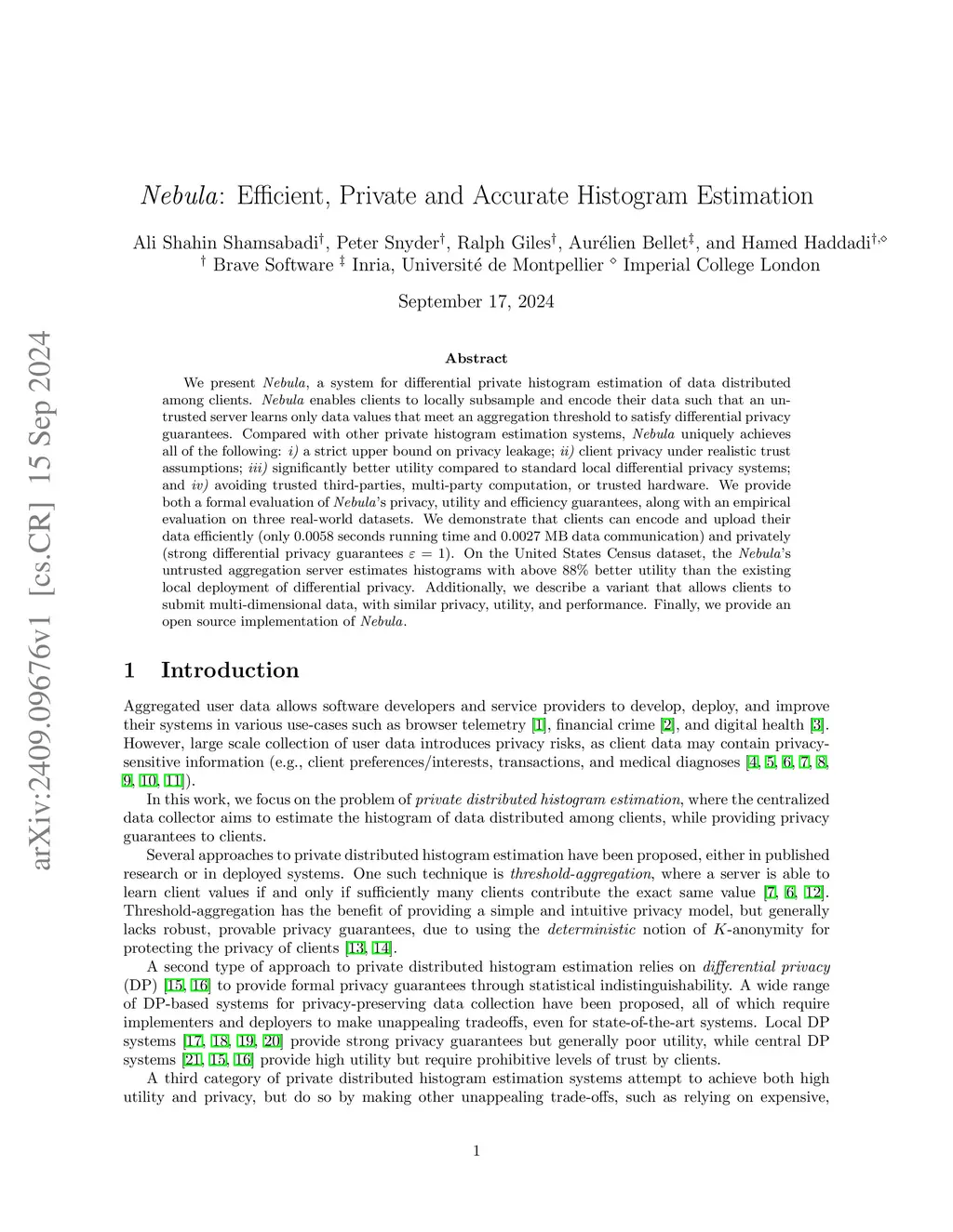 Nebula: Efficient, Private and Accurate Histogram Estimation