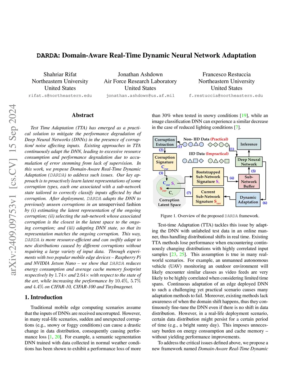 DARDA: Domain-Aware Real-Time Dynamic Neural Network Adaptation