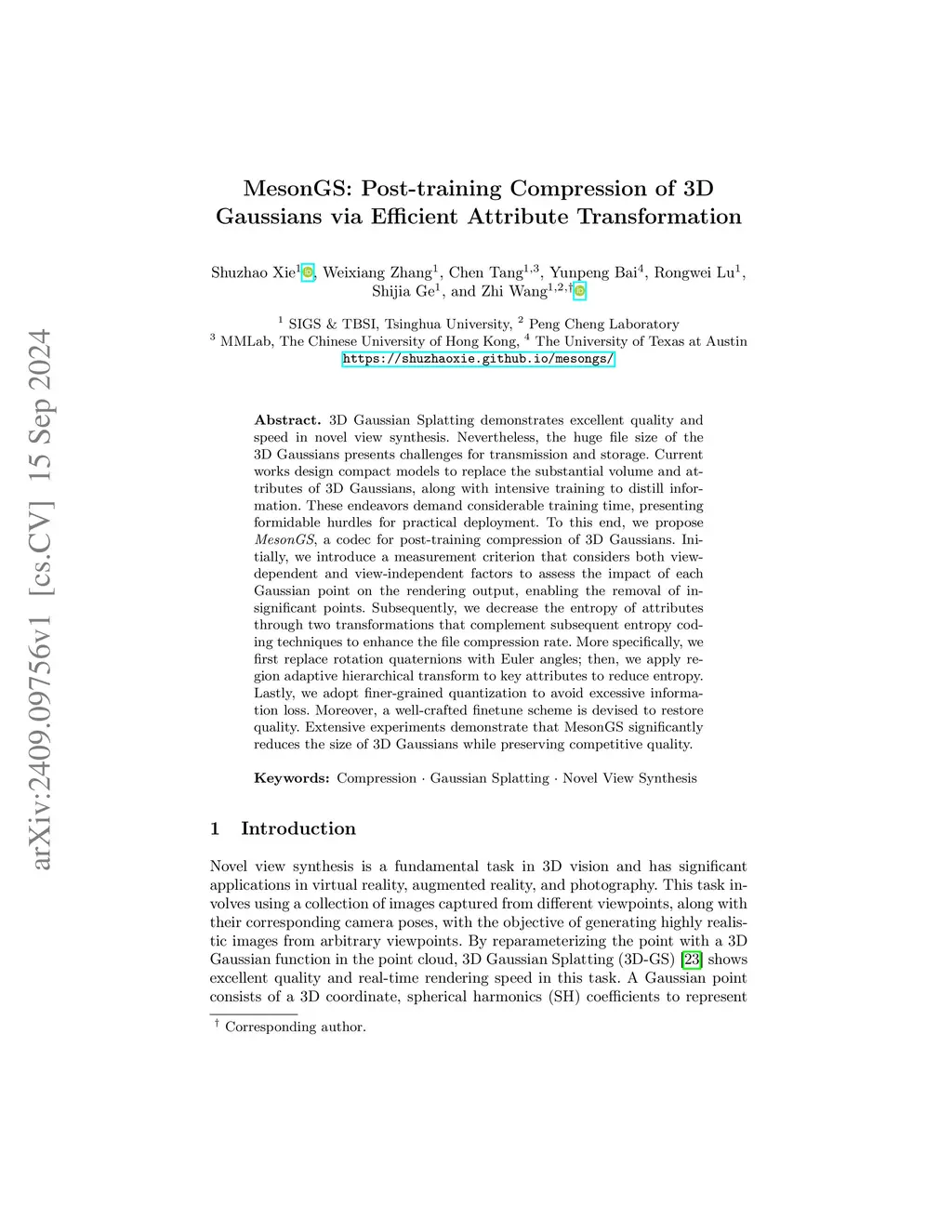 MesonGS: Post-training Compression of 3D Gaussians via Efficient