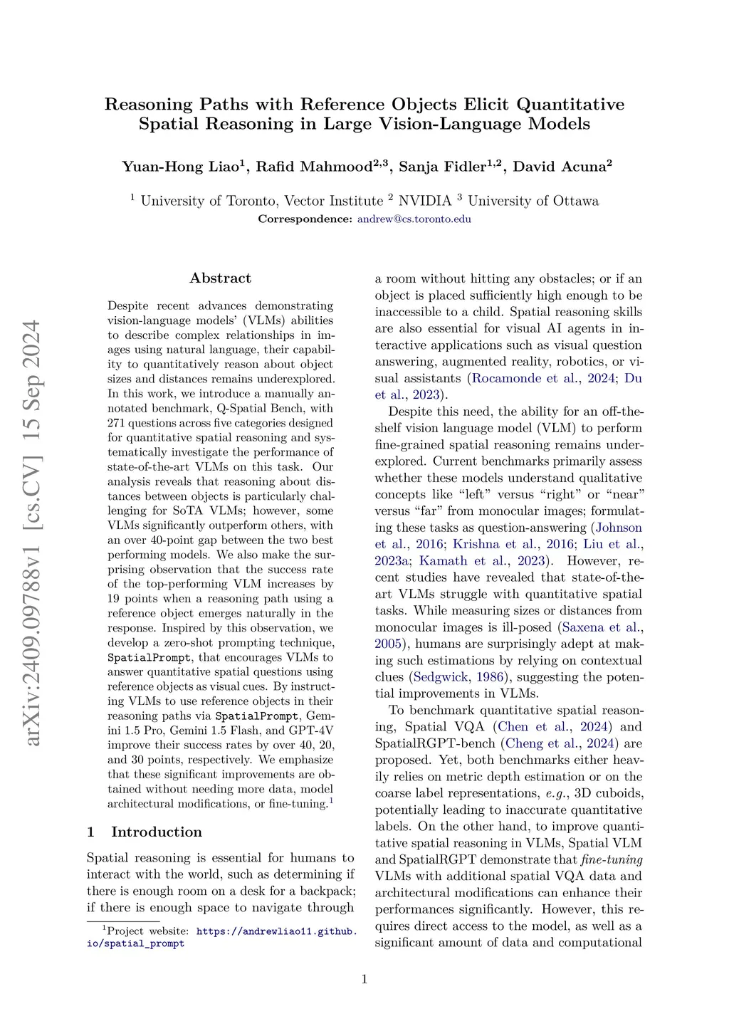 Despite recent advances demonstrating vision-language models' (VLMs) abilities to describe complex relationships in images using natural language, their capability to quantitatively reason about object sizes and distances remains underexplored. In this work, we introduce a manually annotated benchmark, Q-Spatial Bench, with 271 questions across five categories designed for quantitative spatial reasoning and systematically investigate the performance of state-of-the-art VLMs on this task. Our analysis reveals that reasoning about distances between objects is particularly challenging for SoTA VLMs; however, some VLMs significantly outperform others, with an over 40-point gap between the two best performing models. We also make the surprising observation that the success rate of the top-performing VLM increases by 19 points when a reasoning path using a reference object emerges naturally in the response. Inspired by this observation, we develop a zero-shot prompting technique, SpatialPrompt, that encourages VLMs to answer quantitative spatial questions using reference objects as visual cues. By instructing VLMs to use reference objects in their reasoning paths via SpatialPrompt, Gemini 1.5 Pro, Gemini 1.5 Flash, and GPT-4V improve their success rates by over 40, 20, and 30 points, respectively. We emphasize that these significant improvements are obtained without needing more data, model architectural modifications, or fine-tuning.