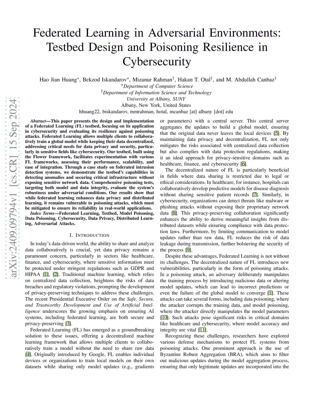 Federated Learning in Adversarial Environments: Testbed Design and Poisoning Resilience in Cybersecurity