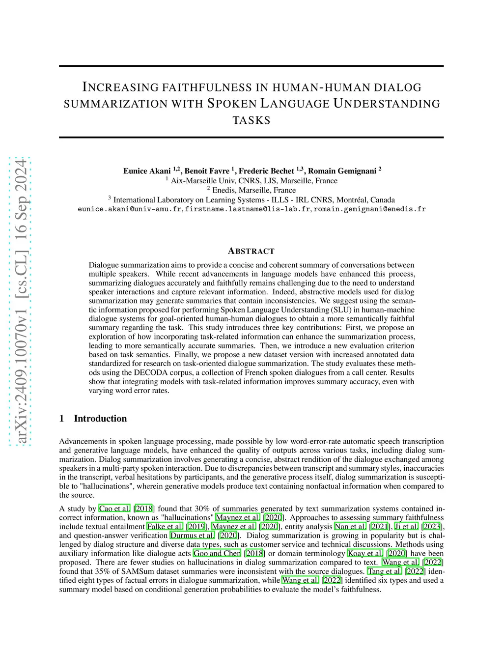 Increasing faithfulness in human-human dialog summarization with Spoken