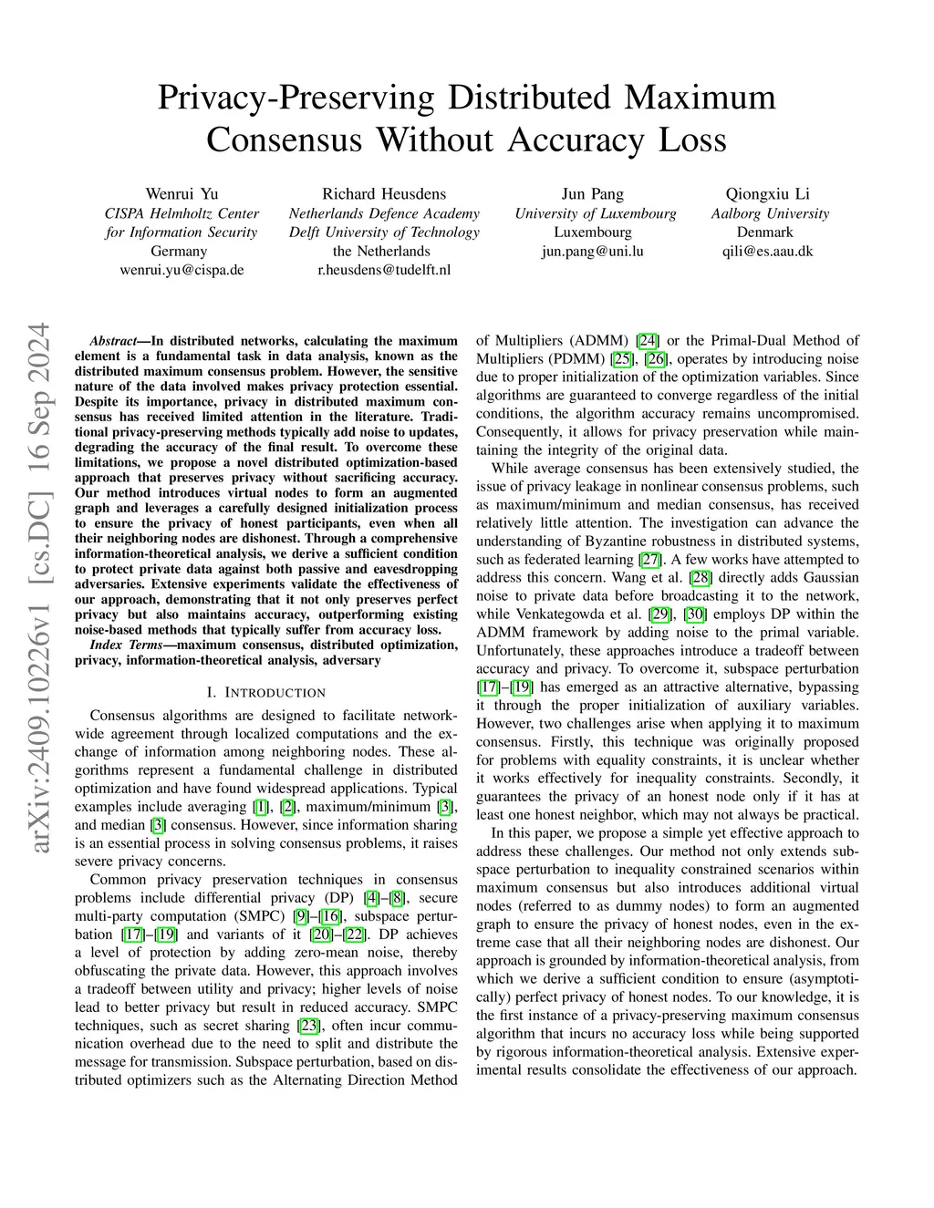 Privacy-Preserving Distributed Maximum Consensus Without Accuracy Loss