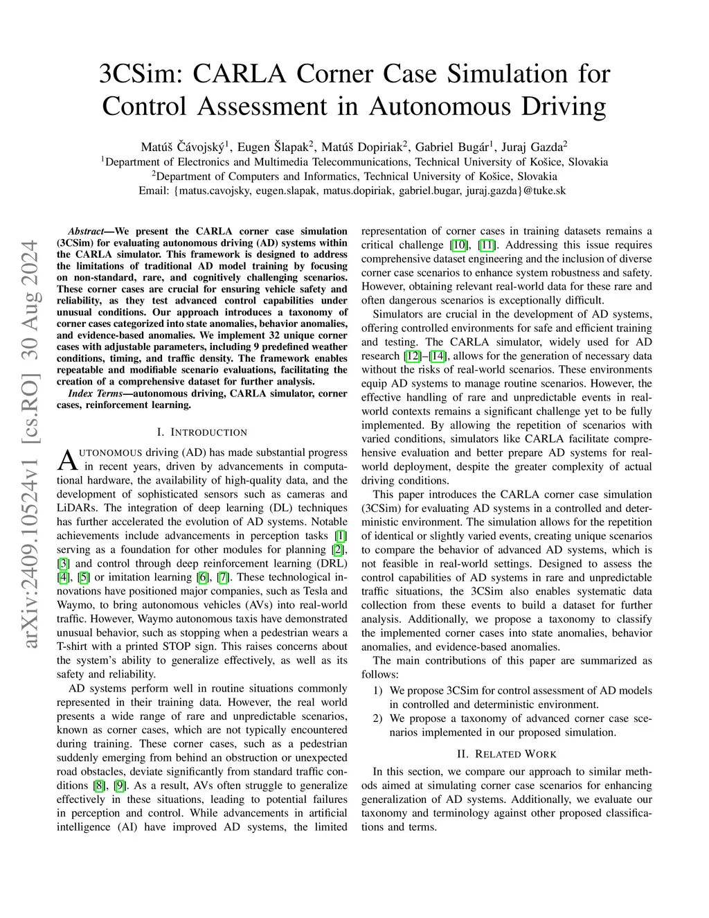 3CSim: CARLA Corner Case Simulation for Control Assessment in Autonomous