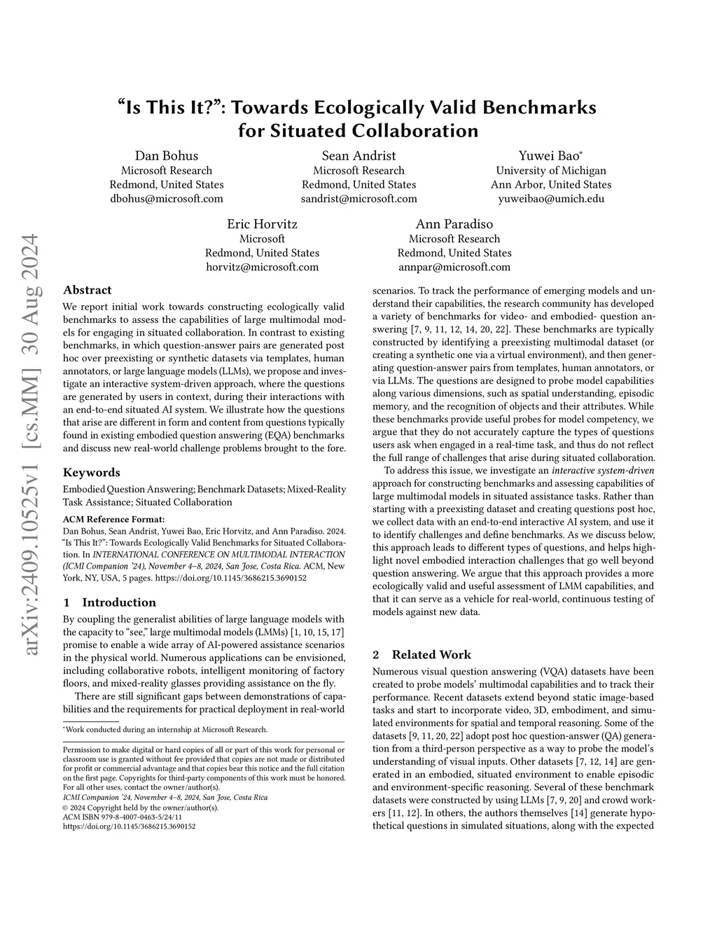 We report initial work towards constructing ecologically valid benchmarks to assess the capabilities of large multimodal models for engaging in situated collaboration. In contrast to existing benchmarks, in which question-answer pairs are generated post hoc over preexisting or synthetic datasets via templates, human annotators, or large language models (LLMs), we propose and investigate an interactive system-driven approach, where the questions are generated by users in context, during their interactions with an end-to-end situated AI system. We illustrate how the questions that arise are different in form and content from questions typically found in existing embodied question answering (EQA) benchmarks and discuss new real-world challenge problems brought to the fore.