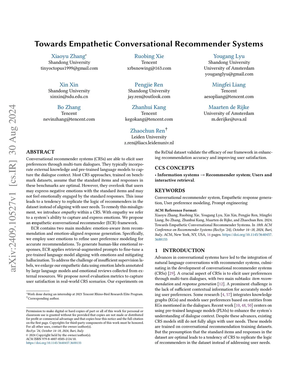 Conversational recommender systems (CRSs) are able to elicit user preferences through multi-turn dialogues. They typically incorporate external knowledge and pre-trained language models to capture the dialogue context. Most CRS approaches, trained on benchmark datasets, assume that the standard items and responses in these benchmarks are optimal. However, they overlook that users may express negative emotions with the standard items and may not feel emotionally engaged by the standard responses. This issue leads to a tendency to replicate the logic of recommenders in the dataset instead of aligning with user needs. To remedy this misalignment, we introduce empathy within a CRS. With empathy we refer to a system's ability to capture and express emotions. We propose an empathetic conversational recommender (ECR) framework. ECR contains two main modules: emotion-aware item recommendation and emotion-aligned response generation. Specifically, we employ user emotions to refine user preference modeling for accurate recommendations. To generate human-like emotional responses, ECR applies retrieval-augmented prompts to fine-tune a pre-trained language model aligning with emotions and mitigating hallucination. To address the challenge of insufficient supervision labels, we enlarge our empathetic data using emotion labels annotated by large language models and emotional reviews collected from external resources. We propose novel evaluation metrics to capture user satisfaction in real-world CRS scenarios. Our experiments on the ReDial dataset validate the efficacy of our framework in enhancing recommendation accuracy and improving user satisfaction.
