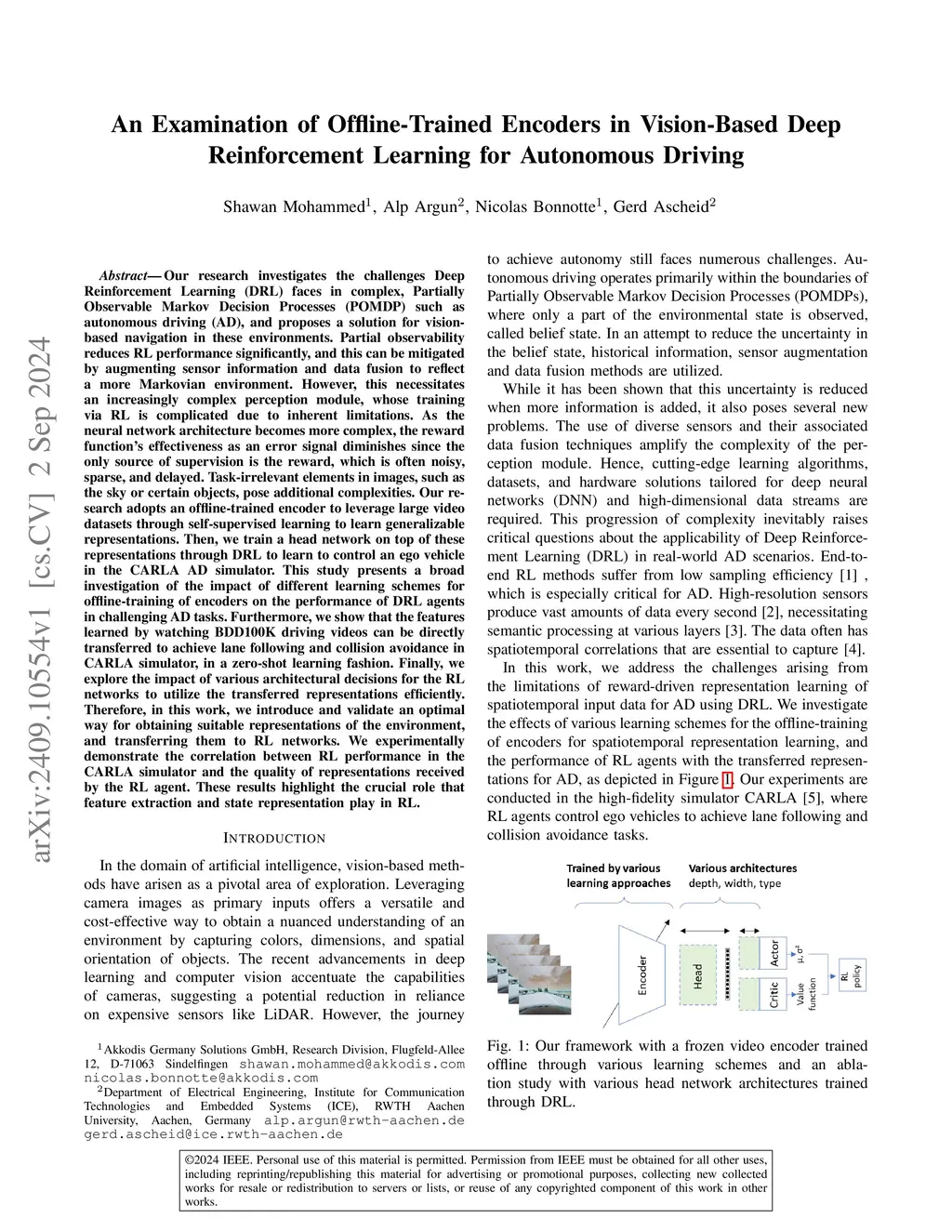 Our research investigates the challenges Deep Reinforcement Learning (DRL) faces in complex, Partially Observable Markov Decision Processes (POMDP) such as autonomous driving (AD), and proposes a solution for vision-based navigation in these environments. Partial observability reduces RL performance significantly, and this can be mitigated by augmenting sensor information and data fusion to reflect a more Markovian environment. However, this necessitates an increasingly complex perception module, whose training via RL is complicated due to inherent limitations. As the neural network architecture becomes more complex, the reward function's effectiveness as an error signal diminishes since the only source of supervision is the reward, which is often noisy, sparse, and delayed. Task-irrelevant elements in images, such as the sky or certain objects, pose additional complexities. Our research adopts an offline-trained encoder to leverage large video datasets through self-supervised learning to learn generalizable representations. Then, we train a head network on top of these representations through DRL to learn to control an ego vehicle in the CARLA AD simulator. This study presents a broad investigation of the impact of different learning schemes for offline-training of encoders on the performance of DRL agents in challenging AD tasks. Furthermore, we show that the features learned by watching BDD100K driving videos can be directly transferred to achieve lane following and collision avoidance in CARLA simulator, in a zero-shot learning fashion. Finally, we explore the impact of various architectural decisions for the RL networks to utilize the transferred representations efficiently. Therefore, in this work, we introduce and validate an optimal way for obtaining suitable representations of the environment, and transferring them to RL networks.