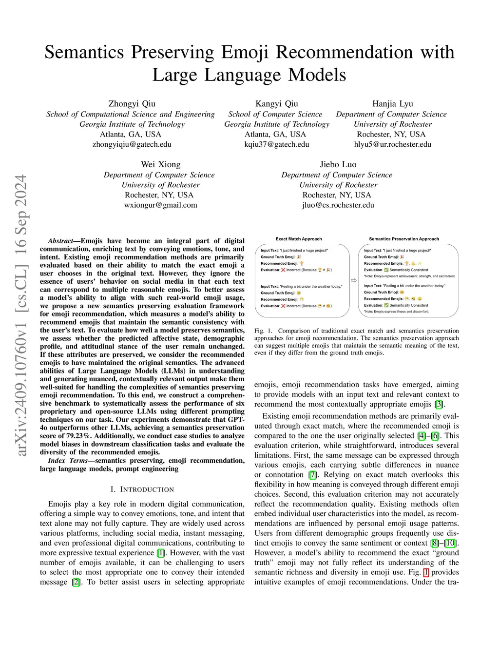Semantics Preserving Emoji Recommendation with Large Language Models