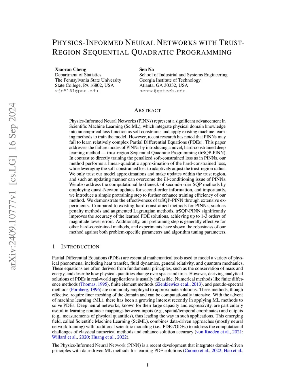 Physics-Informed Neural Networks with Trust-Region Sequential Quadratic