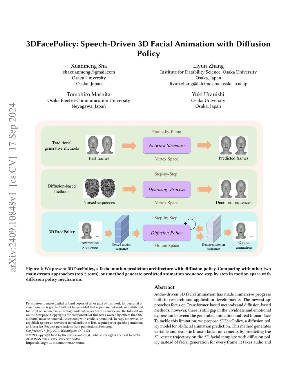 3DFacePolicy: Audio-Driven 3D Facial Animation Based on Action Control
