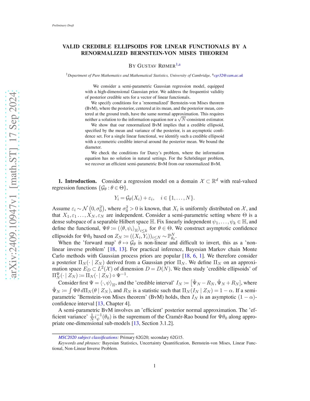 We consider a semi-parametric Gaussian regression model, equipped with a high-dimensional Gaussian prior. We address the frequentist validity of posterior credible sets for a vector of linear functionals. We specify conditions for a 'renormalized' Bernstein-von Mises theorem (BvM), where the posterior, centered at its mean, and the posterior mean, centered at the ground truth, have the same normal approximation. This requires neither a solution to the information equation nor a -consistent estimator. We show that our renormalized BvM implies that a credible ellipsoid, specified by the mean and variance of the posterior, is an asymptotic confidence set. For a single linear functional, we identify such a credible ellipsoid with a symmetric credible interval around the posterior mean. We bound the diameter. We check the conditions for Darcy's problem, where the information equation has no solution in natural settings. For the Schr\"odinger problem, we recover an efficient semi-parametric BvM from our renormalized BvM.